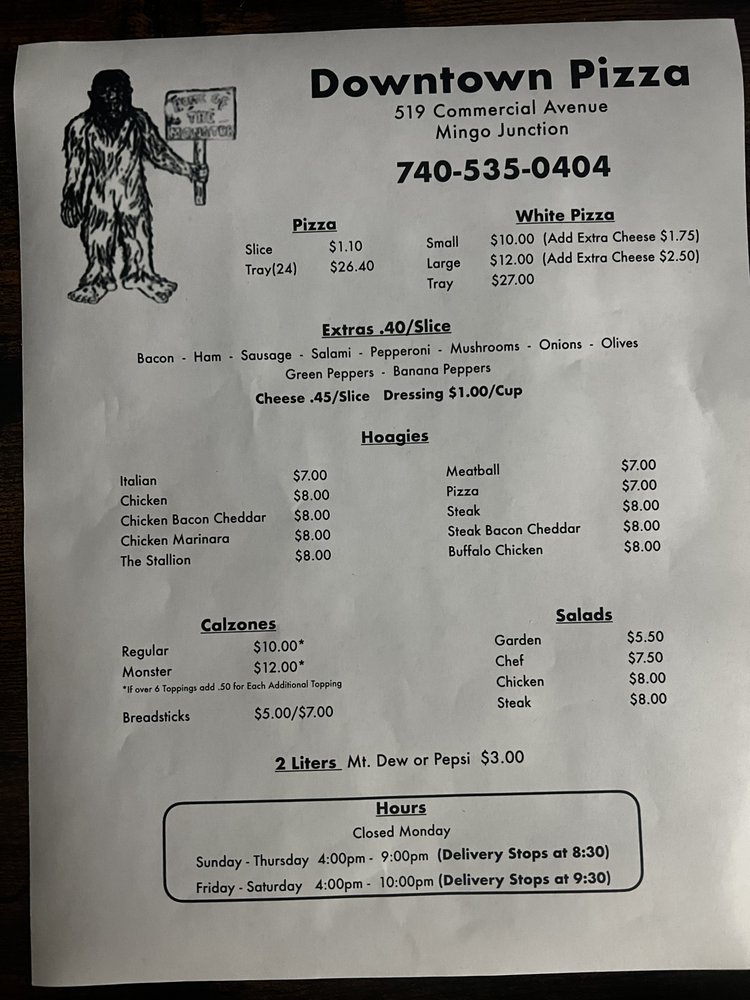 Downtown Pizza Mingo Junction Menu (Update 2025)